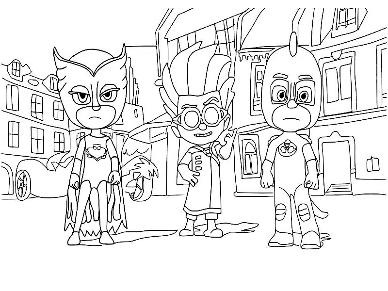 Vi invitiamo a stamparli subito: cosรฌ il vostro bambino avrร la collezione completa dei disegni pj mask da colorare con i tre eroi uniti.