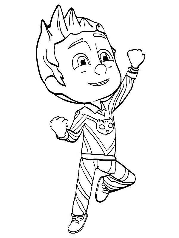 Passiamo ora a Geco, conosciuto anche come Gattoboy. ร il leader dei pj masks super pigiamini da colorare: veloce come un fulmine, agile e con un super-udito che gli permette di guidare il gruppo nelle missioni notturne.